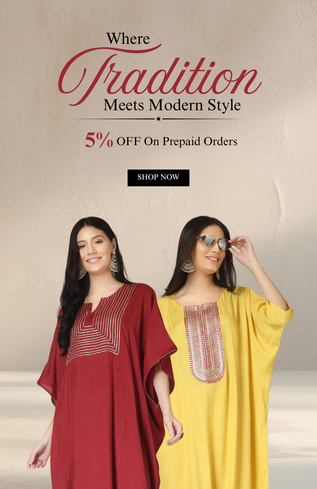 Festive Gota Neck Kaftan Dress – Statement Elegance for Every Occasion”