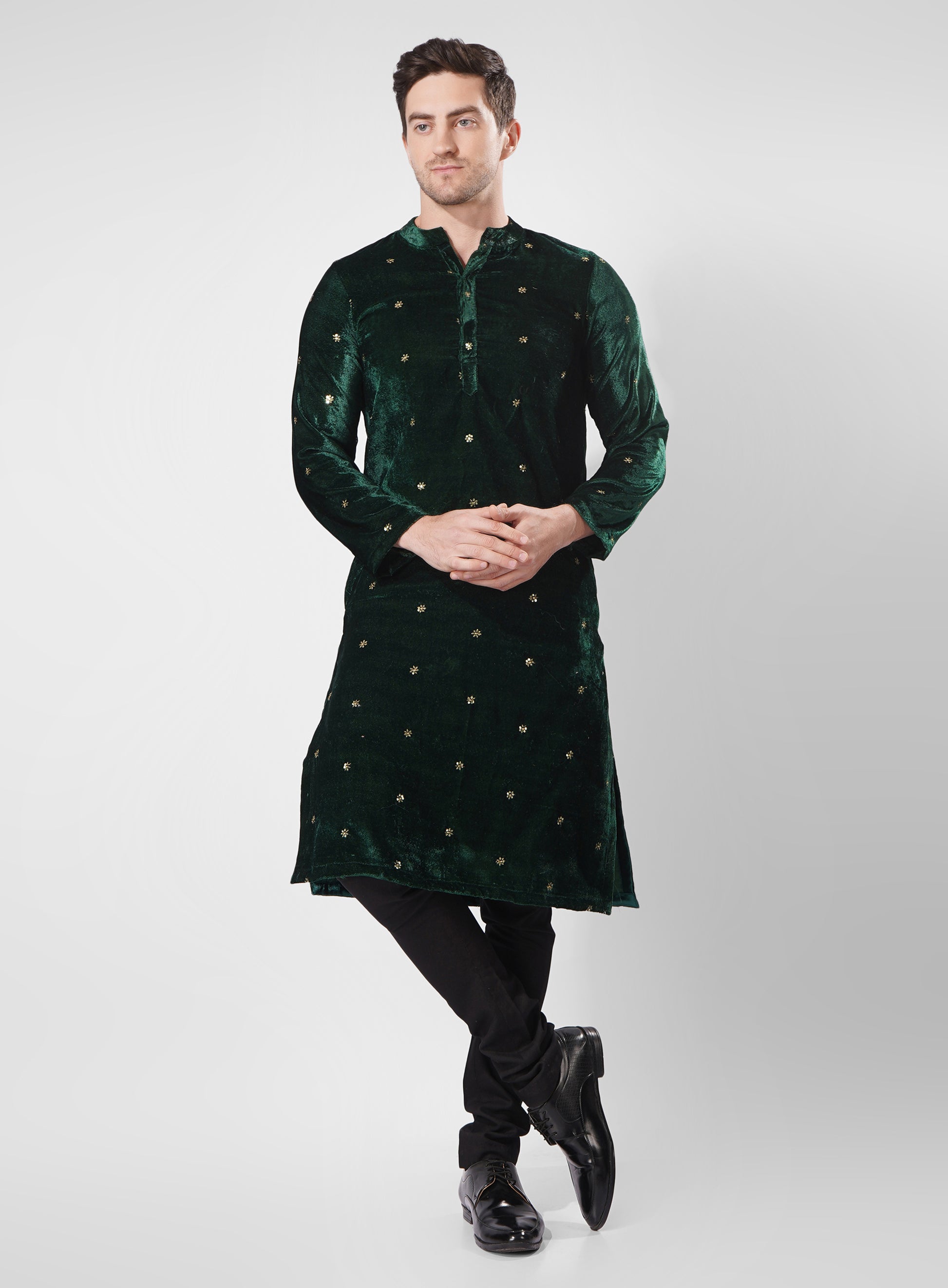 “Crafted from premium velvet, this men’s kurta exudes a royal charm with its rich sheen and smooth finish. Perfect for weddings, festive occasions, and evening celebrations.”
