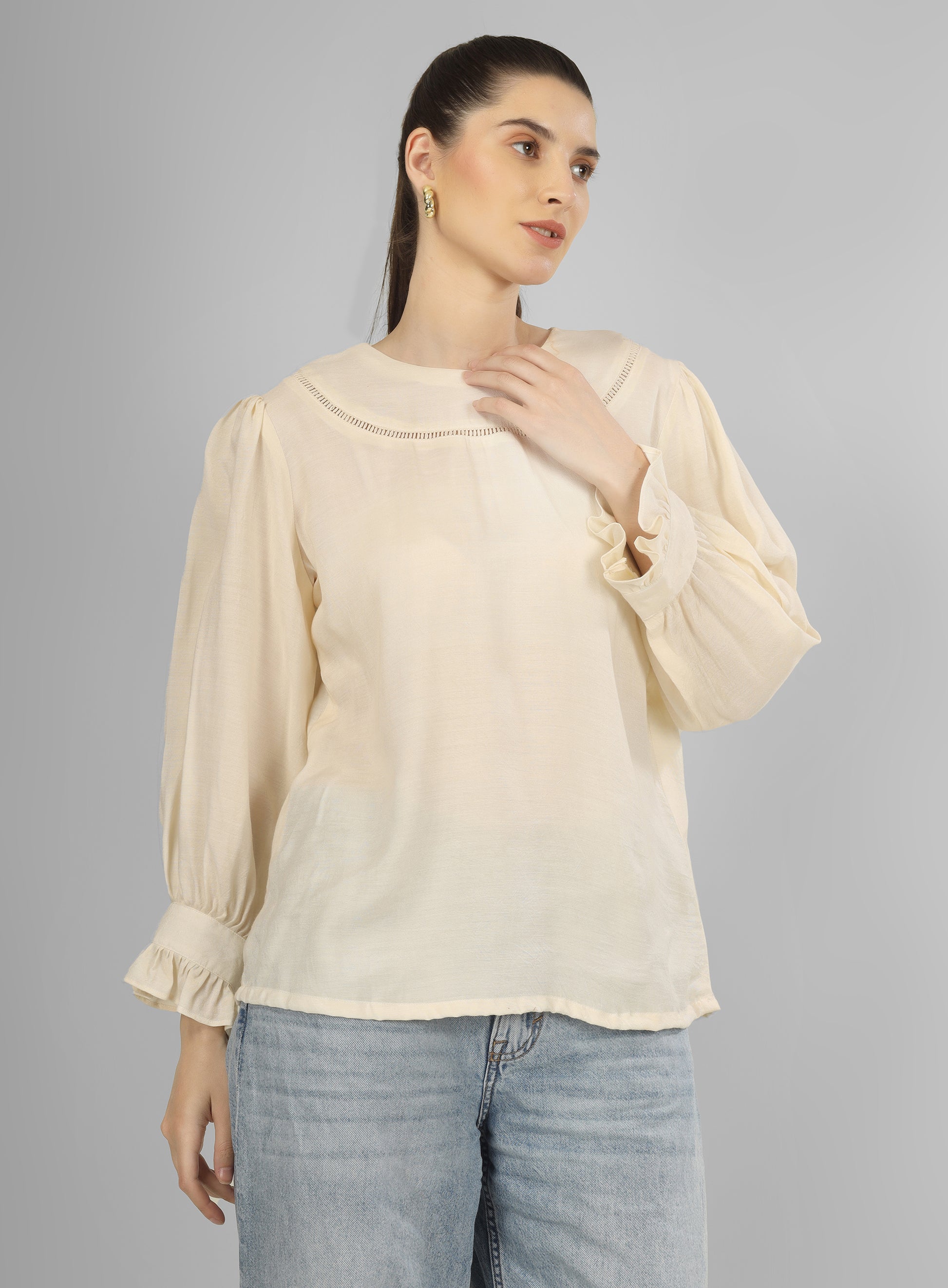 Breeze through summer in style with this offwhite top featuring full gathered sleeves and delicate lace detailing at the neckline. Lightweight and airy, it’s perfect for warm days while keeping your look effortlessly chic. Ideal for casual outings, brunches, or relaxed summer events, this top combines comfort with feminine elegance.