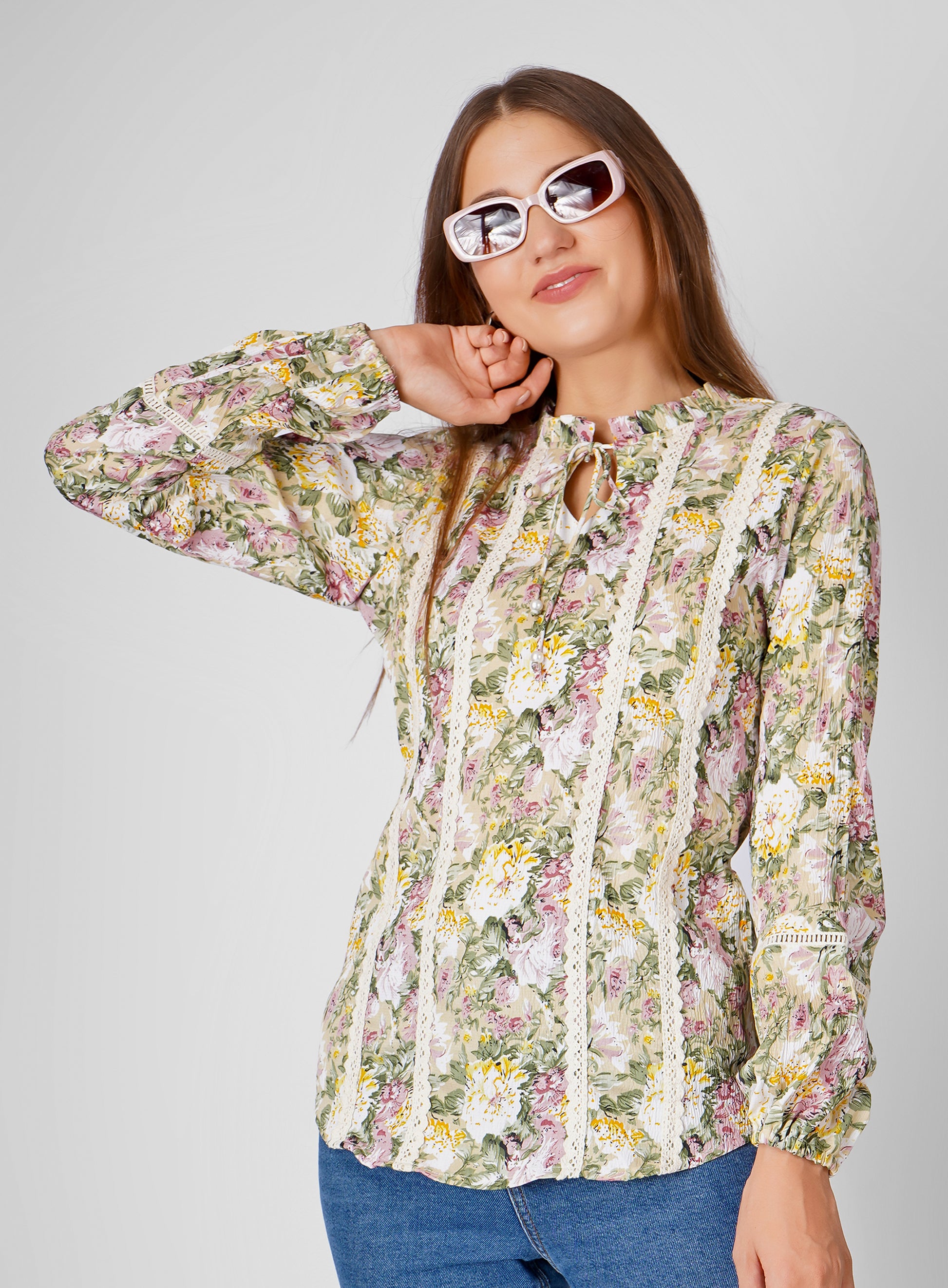 Elevate your everyday elegance with our Wrinkle-Resistant Cotton Floral Print Top.